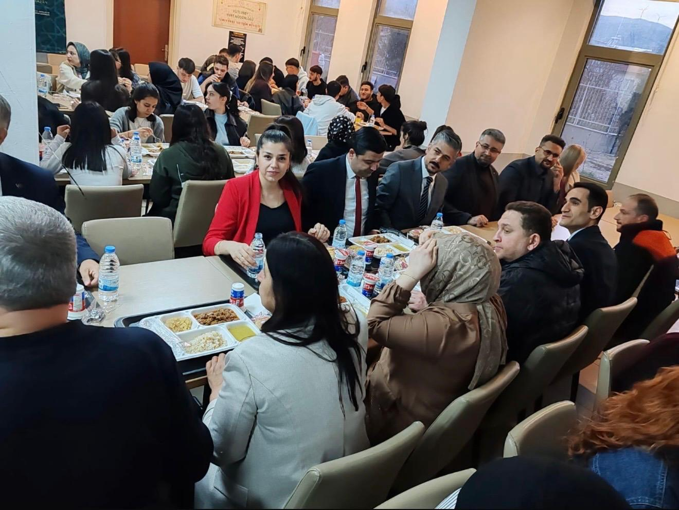 Uluborlu Kutlubey KYK Yemekhanesi’nde Uluborlulu bir hayırseverin katkılarıyla düzenlenen iftar programında öğrencilerimizle bir araya geldik. İftar programı öncesinde Üniversite Yönetimimiz; Uluborlu Kaymakamı Sayın Ahmet Açıkgöz ve Uluborlu Belediye Başkanı Sayın Ahmet Oğuz Bakır ile bir araya gelerek Yüksekokulumuzun genel durumu ve yapılacak iyileştirme çalışmaları hakkında istişarelerde bulundu. Programa Üniversitemiz Rektörü Sayın Prof. Dr. Yılmaz Çatal, Uluborlu Belediye Başkanı Ahmet Oğuz Bakır, Uluborlu Kaymakamı Ahmet Açıkgöz, Rektör Yardımcımız Sayın Prof. Dr. Murat Öztürk, İl Genel Meclis Başkanı Sayın Av. Mehmet Ali Ertuğrul, Şarkikaraağaç Turizm MYO Müdürü Sayın Öğr. Gör. Şakir Hüseyin Aksöz, ilçe protokolümüz, akademik personelimiz ve öğrencilerimiz katılım sağlamıştır. İftar sonrasında Rektörümüz Sayın Prof. Dr. Yılmaz Çatal öğrencilerimizin sorularını yanıtlayarak talep ve beklentilerini dinlemiştir. Ramazan ayının birlik ve beraberlik ruhunu hep birlikte yaşadığımız bu anlamlı programda emeği geçen herkese teşekkür ederiz.